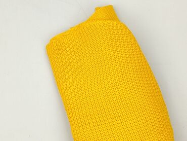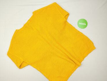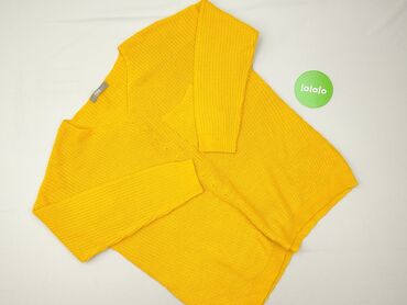 Sweter damski, żółty, ażurowy - Rozmiar: L (z metki) - Fason: klasyczny sweter z okrągłym dekoltem - Rękawy: długie - Dzianina: ażurowy splot z dekoracyjnym, geometrycznym wzorem - Wykończenia: śc...