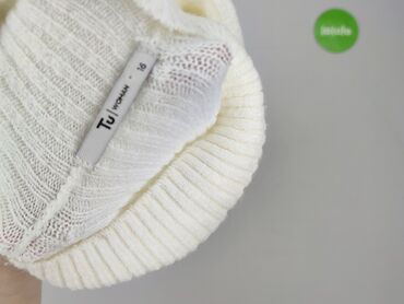 Ażurowy sweter damski Tu Woman - Kolor: kremowy/ecru - Fason: luźny, lekko skrócony, z opuszczoną linią ramion - Rękaw: krótki - Dekolt: okrągły, wykończony ściągaczem - Dzianina: ozdobne, ażurowe...