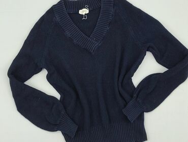 Granatowy sweter damski BLU NOTTE - Rozmiar: S (36/38) – zgodnie z metką - Fason: dopasowany, długość do bioder - Dekolt: głęboki w kształcie litery V z szeroką, prążkowaną plisą - Rękawy: długie ...