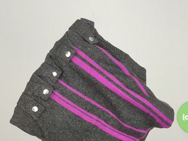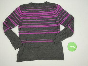 Damski sweter w paski z kieszenią - Rozmiar: S (z metki) - Skład: 100% akryl - Krój: klasyczny, okrągły dekolt - Wzór i kolory: biało-czarna baza w wąskie poziome paski; rękawy asymetryczne – jede...
