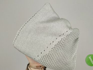 Szary damski sweter/ponczo z dzianiny, rozmiar XL - Krój oversize, luźny, z obniżoną linią ramion – między swetrem a ponczo. - Okrągły dekolt. - Ozdobne, szerokie pasy z czarnej koronki – wzdłuż p...