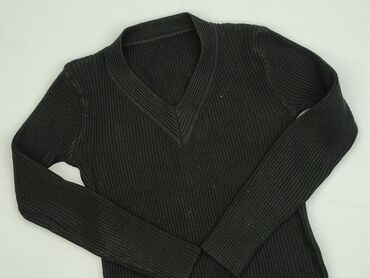 Czarny, prążkowany sweter/bluzka damska Sinsay - Rozmiar: S (z metki) - Krój: dopasowany, elastyczny - Dekolt: w serek (V-neck) - Rękaw: długi - Materiał: dzianina prążkowana z domieszką stretchu ...
