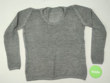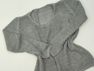 Szary sweter dzianinowy damski - Kolor: jasny szary - Krój: luźny, oversize z obniżoną linią ramion - Rękawy: 3/4, ażurowe (duże oczka) z elastycznymi ściągaczami - Przód: gładki, drobny splot - T...