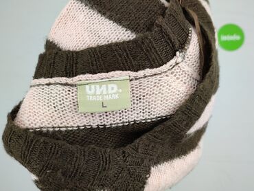 Sweter damski w prążki, rozmiar L - Krój: prosty, lekko wydłużony, z rozcięciami po bokach u dołu - Dekolt: okrągły - Rękaw: długi - Wzór: pionowe prążki z delikatną, lekko połyskującą nitką - Kol...