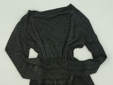 Czarny, dzianinowy sweter damski z połyskiem - Fason: dopasowany w talii dzięki szerokiemu, elastycznemu ściągaczowi; dłuższe ściągacze przy nadgarstkach. - Dekolt: szeroki, zaokrąglony (łódkowy/o...