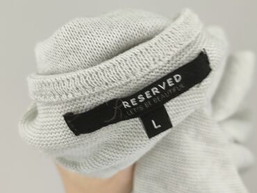 Sweter damski Reserved, rozmiar L. - Fason: klasyczny, prosty krój z długim rękawem - Dekolt: łódka - Kolor/wzór: melanż szaro-biały (delikatny, drobny splot) - Dzianina: cienka, elastyczna, miękk...