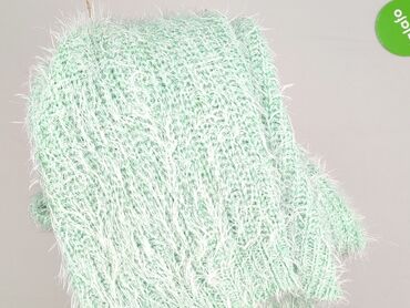 Damski sweter z miękkiej, „włochatej” przędzy, w paski. - Kolor: biały z jasnoniebieskimi pasami - Krój: klasyczny, z okrągłym dekoltem - Rękawy: długie, w tym samym, puszystym splocie - Wzór: poz...