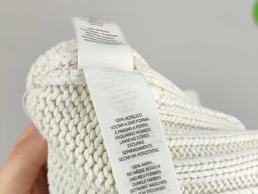 - Materiał: 100% akryl (informacja z metki). Zalecenia pielęgnacyjne: formować na mokro, prasować przez wilgotną ściereczkę, prać z podobnymi kolorami, suszyć na płasko
