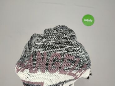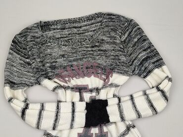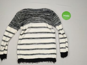 Sweter H&M – damski, rozmiar L - Krój: luźny, z obniżoną linią ramion; rękawy 3/4 lub lekko skrócone. - Splot: gruby, warkoczowy, melanż czarno-biały. - Dekolt: okrągły. - Wykończenie: ściągacze p...