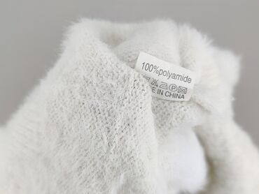 Biały, puszysty sweter damski z długim rękawem - Materiał: 100% poliamid (etykieta na zdjęciu) - Miękka, „futerkowa” faktura – przyjemny w dotyku, lekko włochaty - Klasyczny, prosty krój z okrągłym...