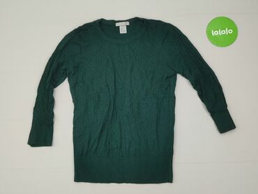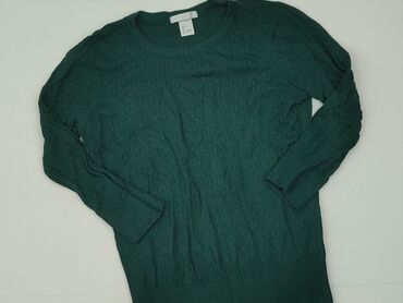 Ciemnozielony sweter damski marki H&M z kolekcji L.O.G.G. Ma okrągły dekolt i długie rękawy, co czyni go uniwersalnym elementem garderoby. Wykonany z dzianiny o drobnym splocie, sweter jest idealny...Stan: