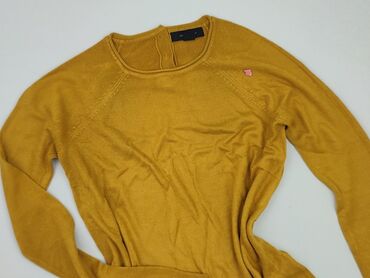 Żółty sweter damski z lekkiej, ażurowej dzianiny - Kolor: intensywna, neonowa żółć - Fason: luźny, swobodny krój z obniżoną linią ramion - Dekolt: okrągły - Rękawy: długie - Wykończenie: szeroki ś...
