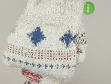 InnyDamski sweter z długim rękawem, z miękkiej, „włochatej” dzianiny. Wzór inspirowany motywami etno/azteckimi: poziome pasy i romby w kolorach bieli, granatu, jasnoniebieskiego i ceglastoczerwonego. Gruby, przytulny golf typu komin otula szyję. Elastyczne ściągacze przy mankietach i u dołu. Dzianina o wyraźnej fakturze „shaggy” nadaje całości charakteru i zapewnia ciepło.