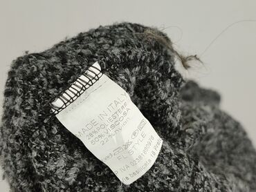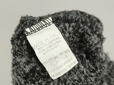 Sweter damski, włoski, melanżowy - Krój: luźny, swobodny, z opuszczoną linią ramion - Rękawy: 3/4 - Dekolt: okrągły - Dół i mankiety: ściągaczowe wykończenie - Wzór/przędza: szary melanż z białymi...