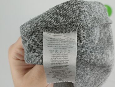 Szary damski sweter/ponczo z dzianiny, rozmiar XL - Krój oversize, luźny, z obniżoną linią ramion – między swetrem a ponczo. - Okrągły dekolt. - Ozdobne, szerokie pasy z czarnej koronki – wzdłuż p...