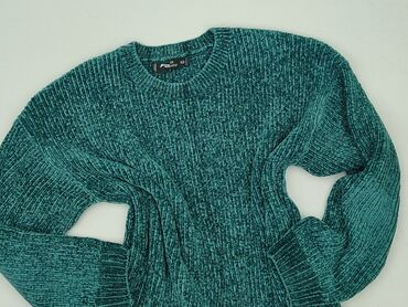 Jasnozielony sweter damski z długim rękawem i okrągłym dekoltem. Wykonany z dzianiny o wyraźnej, prążkowanej strukturze. Dół swetra oraz mankiety rękawów wykończone są ściągaczem, co zapewnia lepsz...