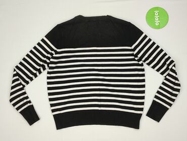 Sweter damski Mohito - Marka: Mohito - Rozmiar z metki: XS - Krój: klasyczny, dopasowany - Dekolt: okrągły - Rękaw: długi - Wzór: poziome paski (czarne tło z jasnymi, wąskimi prążkami) - Wykończen...