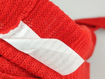 Czerwony sweter damski z ażurowym wzorem na przodzie. - Krój: klasyczny, długie rękawy, okrągły dekolt - Detale: pionowe, dekoracyjne przeszycia i ażurowe wstawki z przodu, gładki tył - Wykończeni...