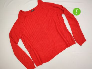 Czerwony sweter damski Janina - Krój: klasyczny, okrągły dekolt, długie rękawy - Wykończenia: ściągacze przy dekolcie, mankietach i u dołu - Materiał: 100% bawełna (metka w środku) - Rozmiar z met...