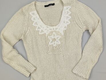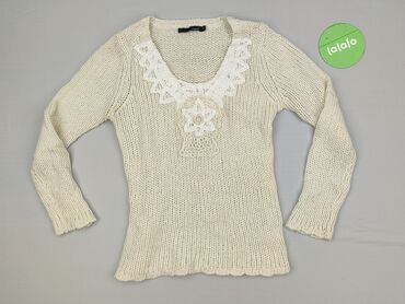 Sweter damski z dzianiny – rozmiar M - Kolor: kremowy/ecru - Fason: klasyczny, lekko dopasowany - Dekolt: okrągły - Rękaw: 3/4 - Splot: grubsza, miękka dzianina o wyraźnym, równym splocie - Detale...