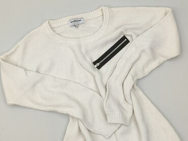 Sweter damski w jasnym, kremowym kolorze, wykonany z dzianiny o luźnym splocie. Posiada zamek błyskawiczny sięgający do połowy klatki piersiowej, co pozwala na regulację dekoltu. Długie rękawy zako...