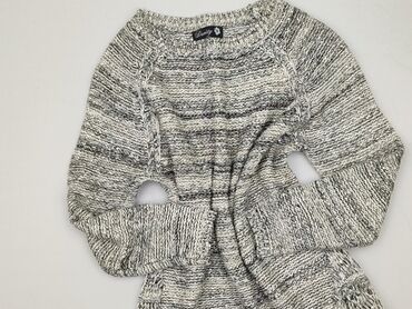 Sweter damski TU, dzianina z ozdobnymi kamieniami na ramionach - Marka: TU - Fason: sweter z długim rękawem, raglanowe rękawy - Kolor: jasnoszary/melange z delikatną, połyskującą nitką - Dekolt: o...Stan: