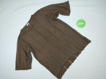 Sweter damski dzianinowy, kopertowy - Kolor: melanż brązu i szarości - Fason: dopasowany, kopertowy przód z lekkim marszczeniem i wydłużonym dołem - Rękawy: długie, rozszerzane przy mankietach - S...