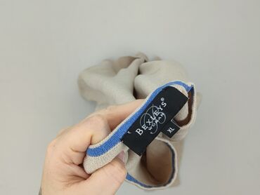 Sweter damski PE-DE-HA, rozmiar XL - Kolor: jasny beż/ecru - Krój: luźny, oversize z obniżoną linią ramion - Dekolt: w kształcie litery V z delikatnym, ozdobnym wykończeniem - Rękawy: krótkie - Dz...