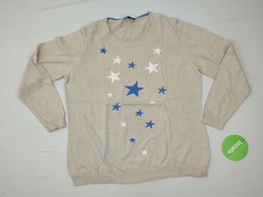 Ażurowy sweter damski, rozmiar XL - Kolor: kremowy/ecru - Fason: luźny, z okrągłym dekoltem - Materiał: 100% akryl (metka na zdjęciu) - Splot: dekoracyjny, ażurowy z powtarzającym się wzorem; falo...