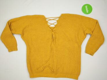 Sweter damski ANCORА Collection, rozmiar M. - Kolor: intensywny żółty/musztardowy - Fason: luźny, z obniżoną linią ramion - Dekolt: ozdobny, kaskadowe falbany z prążkowanej dzianiny - Rękawy: 3/4,...