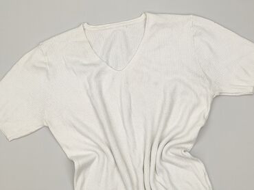 Biała, cienka bluzka/sweterek z długim rękawem. - Krój: prosty, dopasowany, okrągły dekolt - Rękawy: długie z wąskimi mankietami - Dół: ściągacz prążkowany - Materiał: lekka, delikatna dzianina o ...