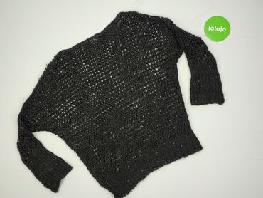 Damski sweter z połyskiem, rozmiar S - Fason: klasyczny pulower z okrągłym dekoltem, długi rękaw. - Kolor: czarny z drobną, granatowo-niebieską nitką dającą delikatny, wieczorowy połysk. - Detale:...