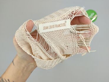 - Wzór/detal: mocno ażurowa, „drabinkowa” dzianina w pionowe pasy – lekki, przewiewny efekt