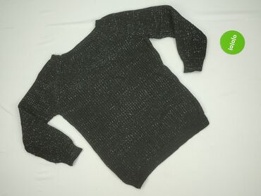 Czarny, dzianinowy sweter damski z połyskiem - Fason: dopasowany w talii dzięki szerokiemu, elastycznemu ściągaczowi; dłuższe ściągacze przy nadgarstkach. - Dekolt: szeroki, zaokrąglony (łódkowy/o...
