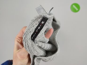 Sweter damski, dzianinowy, szary melanż - Krój: lekko skrócony (cropped), luźny, z opuszczoną linią ramion - Dekolt: półgolf/ribbed mock neck - Długość rękawa: długi - Splot: dekoracyjne połączeni...