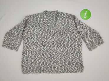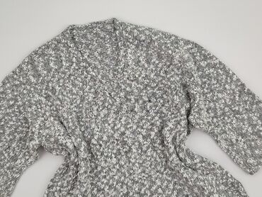 Sweter damski, dzianinowy, melanżowy - Kolor: szaro-biały melanż - Krój: klasyczny, proste body, długie rękawy - Dekolt: okrągły (crew neck) - Splot: grubszy, wyraźna faktura; ściągacze przy kołni...