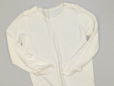 OkrągłySweter damski z dzianiny, ecru/kremowy, z długim rękawem.