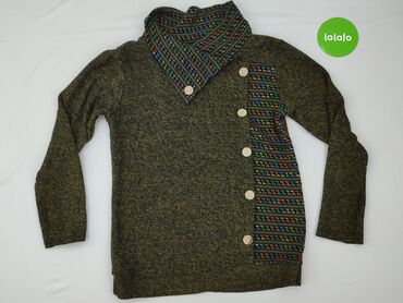 Sweter damski COLLEZIONE GIAN – Made in Italy - Kolor: oliwkowa zieleń - Fason: luźny, oversize z obniżoną linią ramion; delikatnie wydłużony tył - Dekolt: łódkowy - Rękawy: długie - Dzianina: dro...Stan: