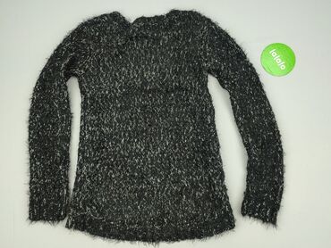 Sweter damski, czarny, gruby splot - Model: sweter z długim rękawem - Kolor: czarny - Fason: klasyczny, lekko dopasowany - Dekolt: okrągły - Dzianina: gruby, elastyczny splot; przód zdobiony piono...Stan: