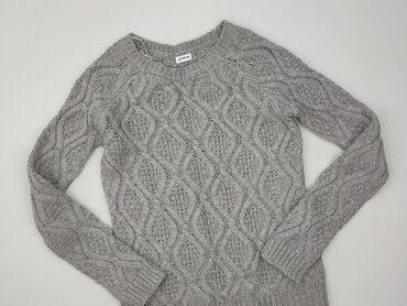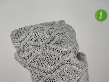 OkrągłySweter damski Pimkie, szary, dzianina o grubym splocie z reliefowym wzorem rombów/plecionki na całej powierzchni.