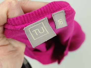 Różowy sweter damski TU Woman - Kolor: intensywny róż - Fason: luźniejszy, z opuszczoną linią ramion - Rękawy: długie, delikatnie bufiaste, zakończone szerokim ściągaczem - Dekolt: okrągły - Mater...
