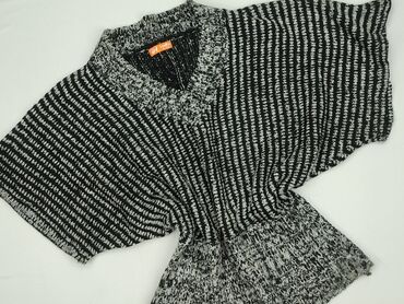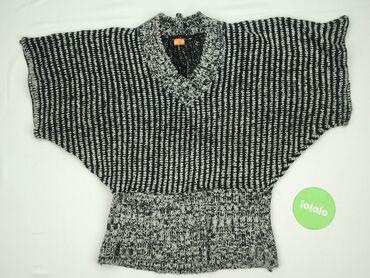 Szary damski sweter/ponczo z dzianiny, rozmiar XL - Krój oversize, luźny, z obniżoną linią ramion – między swetrem a ponczo. - Okrągły dekolt. - Ozdobne, szerokie pasy z czarnej koronki – wzdłuż p...