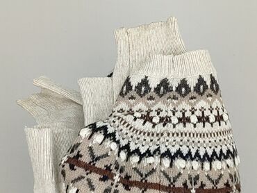 - Wzór: skandynawska/jacquardowa karo-ornamenty na karczku, wielokolorowy (krem, brąz, szarość, czerń), ozdobna faktura z drobnymi węzłami