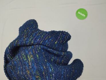 - Kolor i wzór: granatowa baza z melanżową, wielokolorową przędzą (zielone, niebieskie, żółte i fioletowe akcenty), efekt lekko „przetykany”