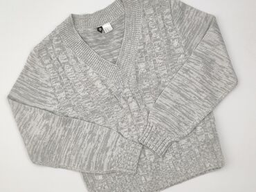 Sweter damski F&F - Krój: klasyczny sweter z dekoltem w serek, długie rękawy, ściągacze przy mankietach i dole. - Kolor/wzór: melanż biało‑szary. - Dzianina: grubszy, mięsisty splot o widocznej fa...