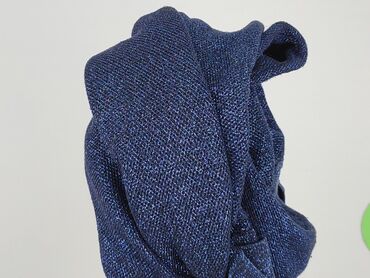 Sweter damski dzianinowy, granatowy z delikatnym połyskiem. - Krój nietoperz: szeroka góra z luźnymi rękawami i dopasowany, elastyczny ściągacz w talii/na biodrach. - Dekolt łagodnie łódkowy. - Dr...