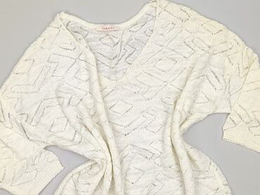 Sweter damski Camaïeu - Kolor: ecru/śmietankowy - Fason: dopasowany, z długim rękawem - Dekolt: okrągły - Detale: ażurowe wstawki przy raglanowych szwach na przodzie oraz wzdłuż rękawów, ściągacz ...