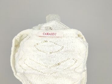 Sweter damski Camaïeu - Kolor: khaki/oliwkowy - Fason: oversize z opuszczoną linią ramion, rękawy 3/4 (nietoperz) - Dekolt: w kształcie litery V (przód i tył) - Dzianina ażurowa z geometrycznym wz...Stan: