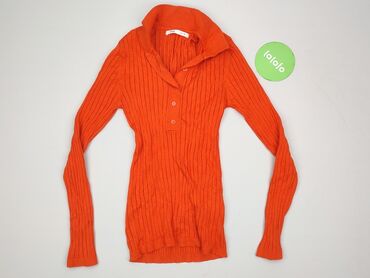 Sweter damski Sinsay, rozmiar S - Kolor: intensywny pomarańcz - Krój: klasyczny, z okrągłym dekoltem - Rękawy: długie; na jednym mankiecie ozdobne metalowe napy - Wykończenia: ściągacze przy dekol...