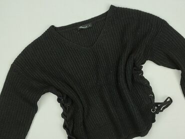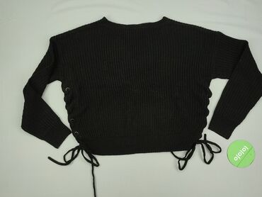 Sweter damski JEAN PASCALE, rozmiar S - Kolor: pudrowy róż - Fason: krótki/cropped, z dekoltem w serek - Splot: gruby, fakturowany (wafelkowy) - Detale: dekoracyjne wiązania po bokach na metalowyc...